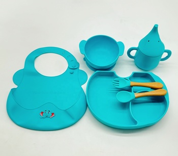 Conjunto de seis peças de Silicone Food-Grade Dinner Plate & Bowl com ventosa Kids Integrated Dining Set for Baby Food
